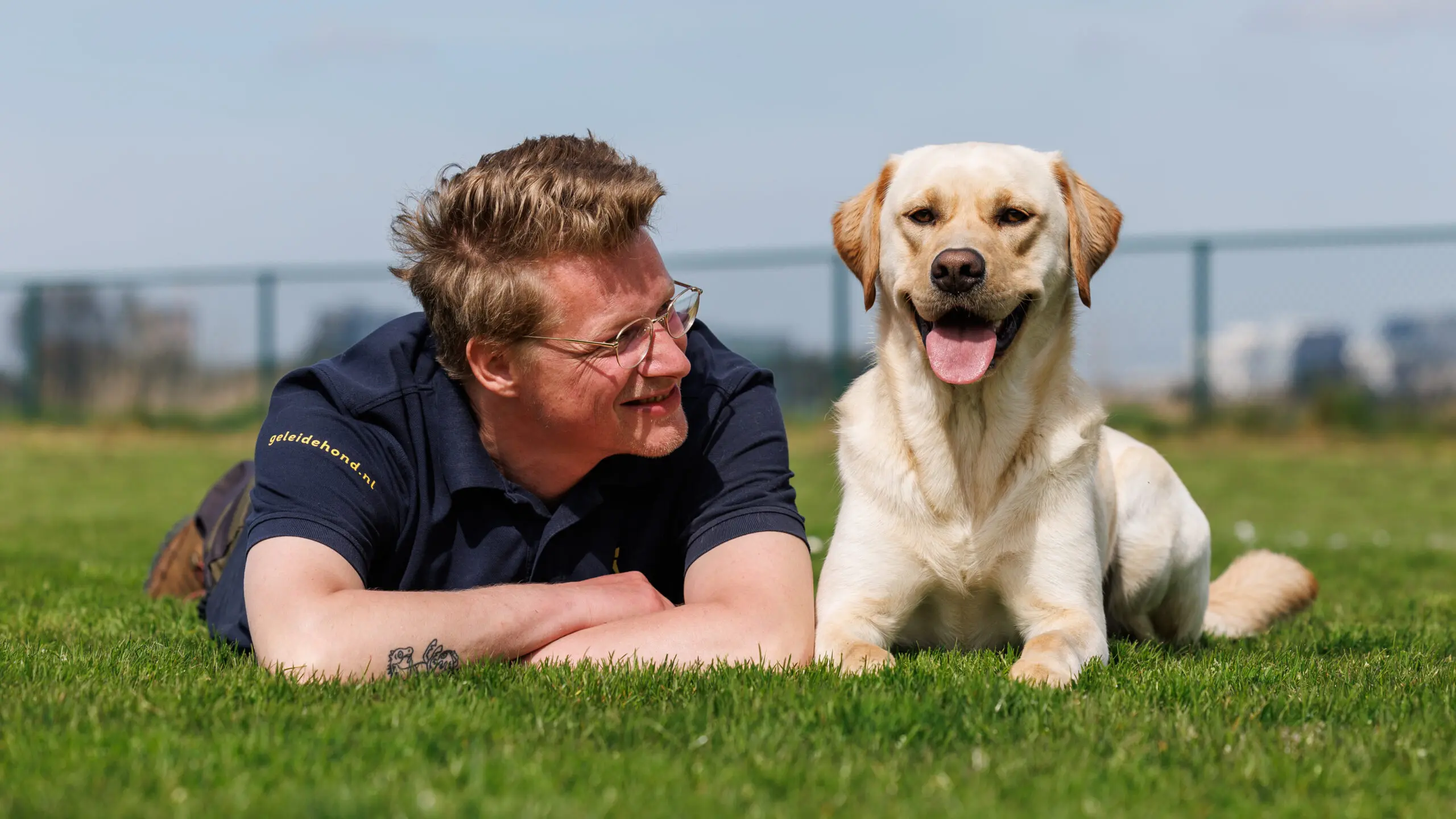Ook laat ik de hond weleens met schoolgenootjes spelen op de speelvelden. Terwijl de hond lekker aan het ravotten is, zet ik de signaleringsoefening in. Dan hoop ik natuurlijk dat hij komt aansnellen. PTSS-assistentiehonden worden er overigens op geselecteerd dat ze baasgericht zijn. Het moet van nature in ze zitten om je voortdurend in de gaten te houden. Ze moeten continu willen weten wat hun baas doet.’